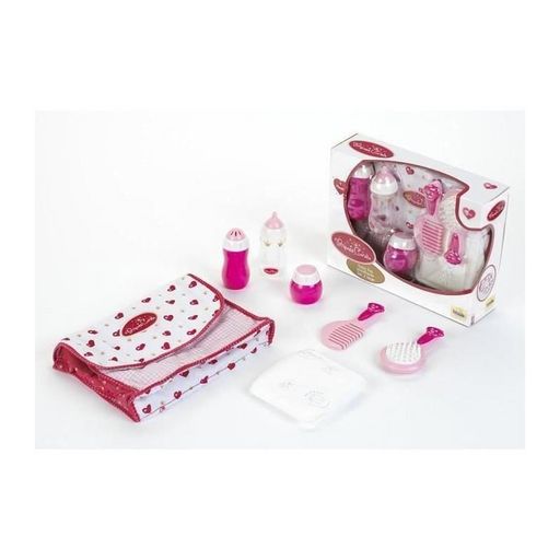 Le kit comprend un sac à bandoulière accompagné d'accessoires réalistes : biberon, brosse, peigne, couche, crème et talc factices. La conception légère et portable permet aux enfants d'emporter facilement leur nécessaire de soin partout avec leurs poupons de 40 cm.