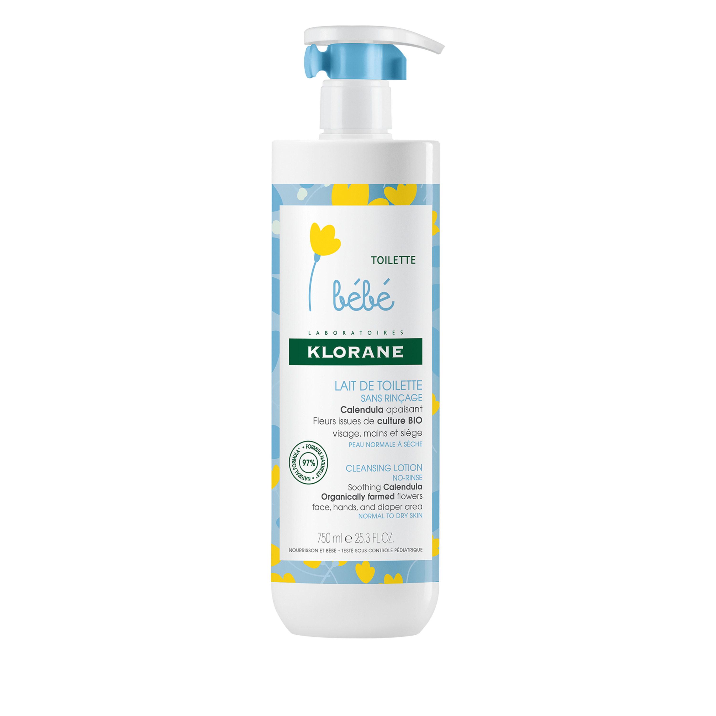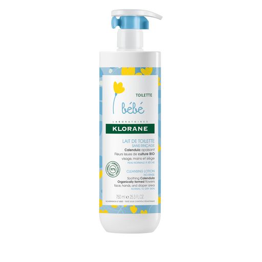 Klorane - Lait de toilette sans rinçage au Calendula apaisant - Bébé - Peau normale à sèche 500MLT