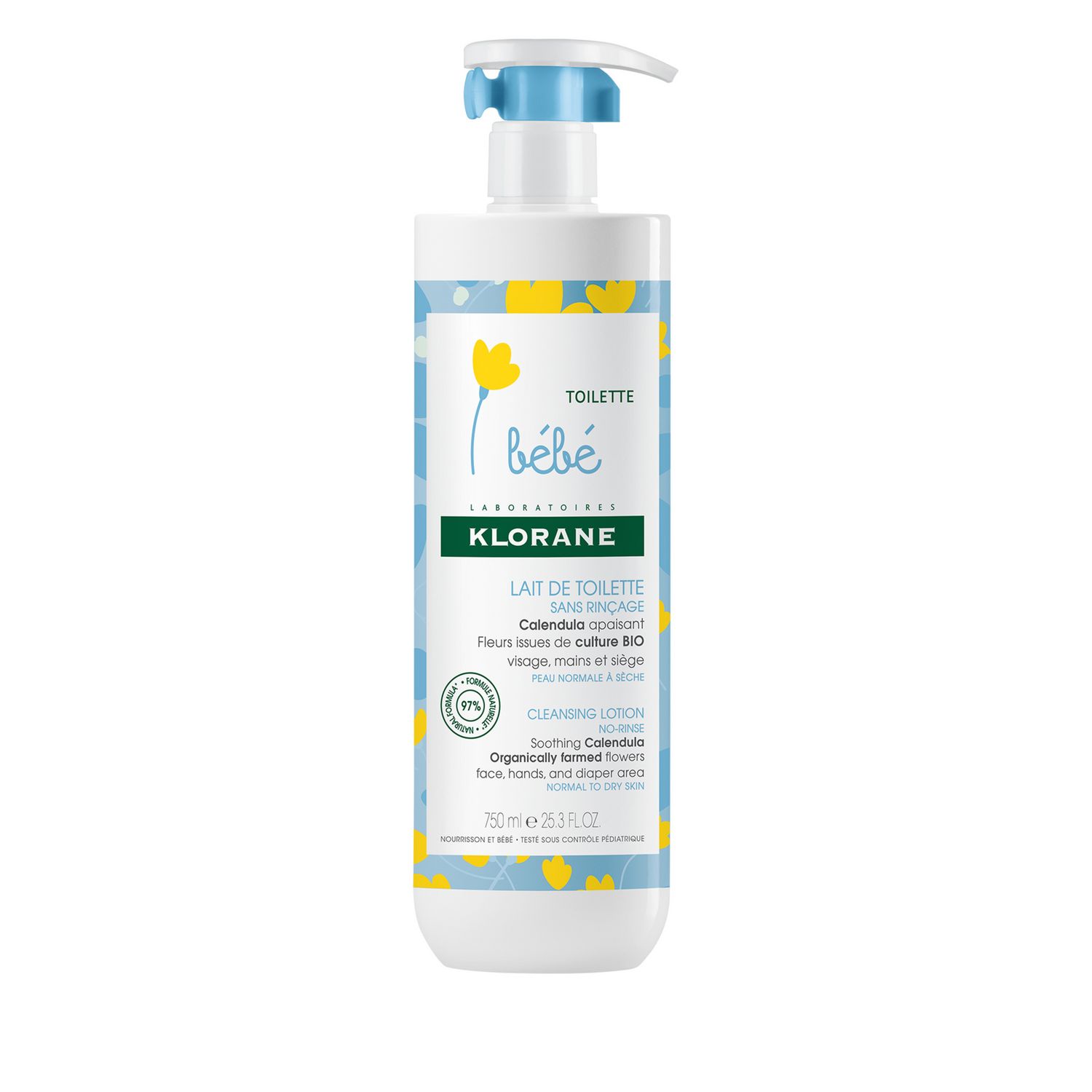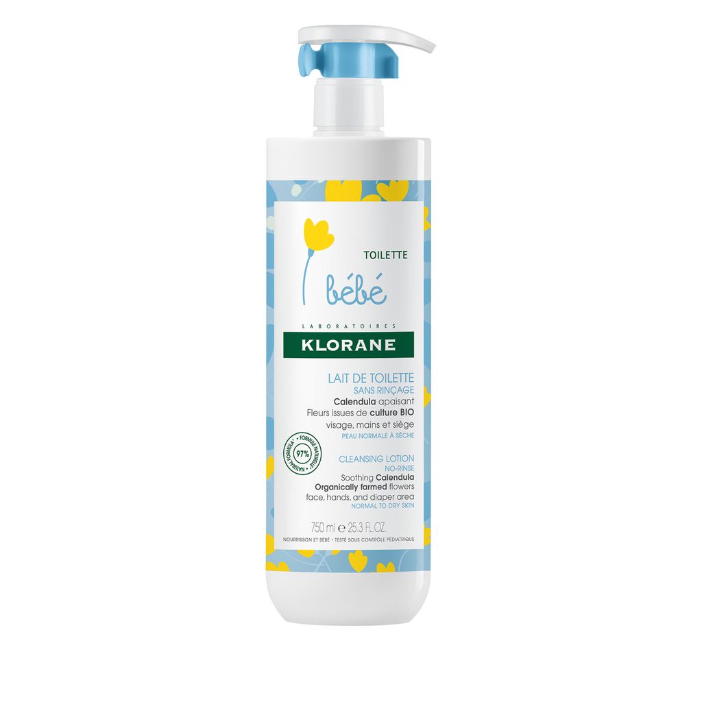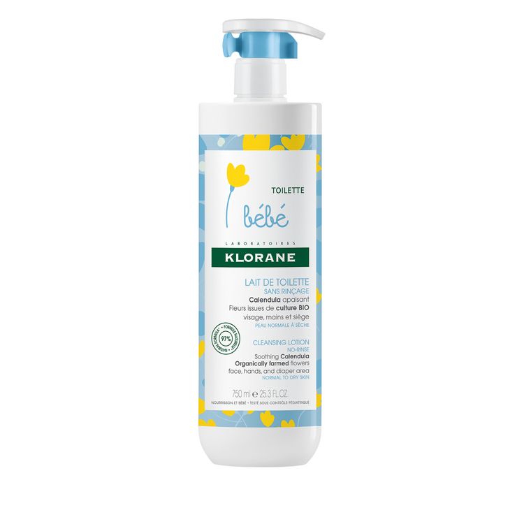 Le Lait nettoyant Klorane Bébé sans rinçage nettoie, nourrit et protège la peau des nourrissons. Extrêmement douce et testée sous contrôle pédiatrique**, la formule nettoyante naturelle* sans alcool est enrichie en huiles végétales et fleurs de Calendula issues de culture BIO pour assouplir et hydrater la peau lors de la toilette. Conditionnée dans un flacon pratique à emporter, la texture lactée apporte fraîcheur et apaisement en un seul geste, sans coller. Parfaitement propre et délicatement parfumée, la peau de bébé est nourrie, apaisée et protégée***.