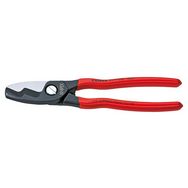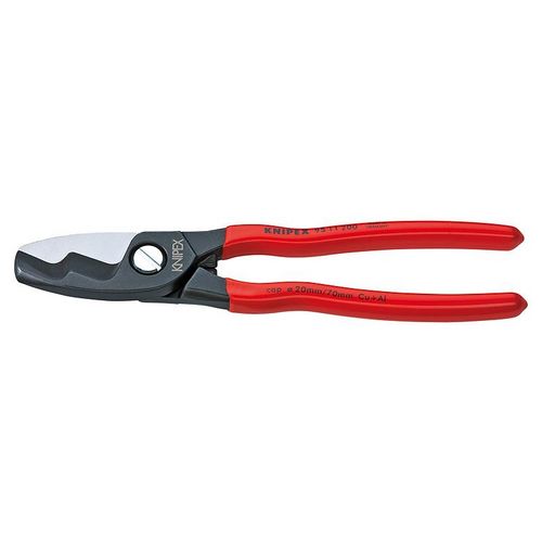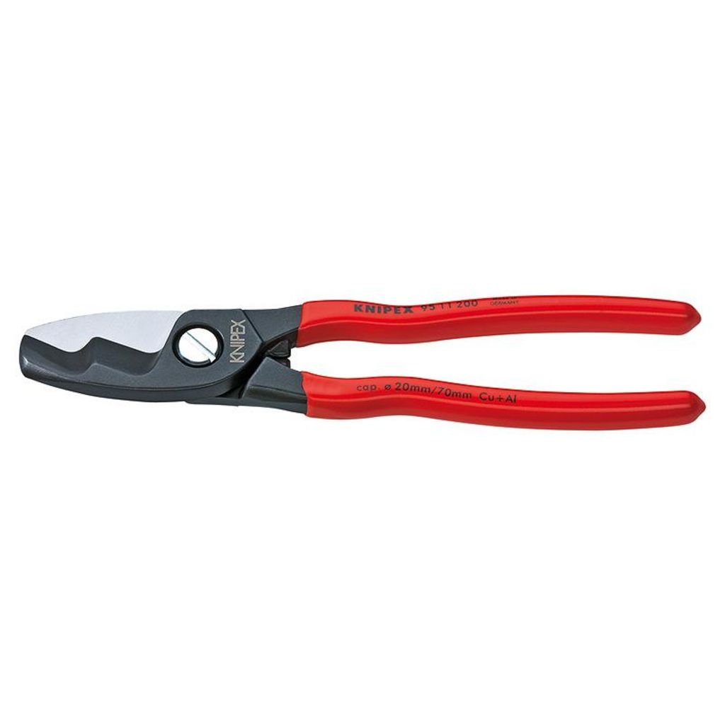 Pour couper les câbles en cuivre et en aluminium, unifilaires et multifilaires. Tranchants trempés, meulés avec précision. Coupe nette et sans écrasement, facile avec prise d&rsquo,une seule main. Acier à outils de qualité spéciale, forgé, trempé à l&rsquo,huile. Ce modèle à double tranchant permet de couper d&rsquo,une seule main des câbles d&rsquo,un diamètre de 20 mm. 2 étapes : une coupe préliminaire dans la partie avant des tranchants, et une coupe définitive dans la partie arrière des tranchants.