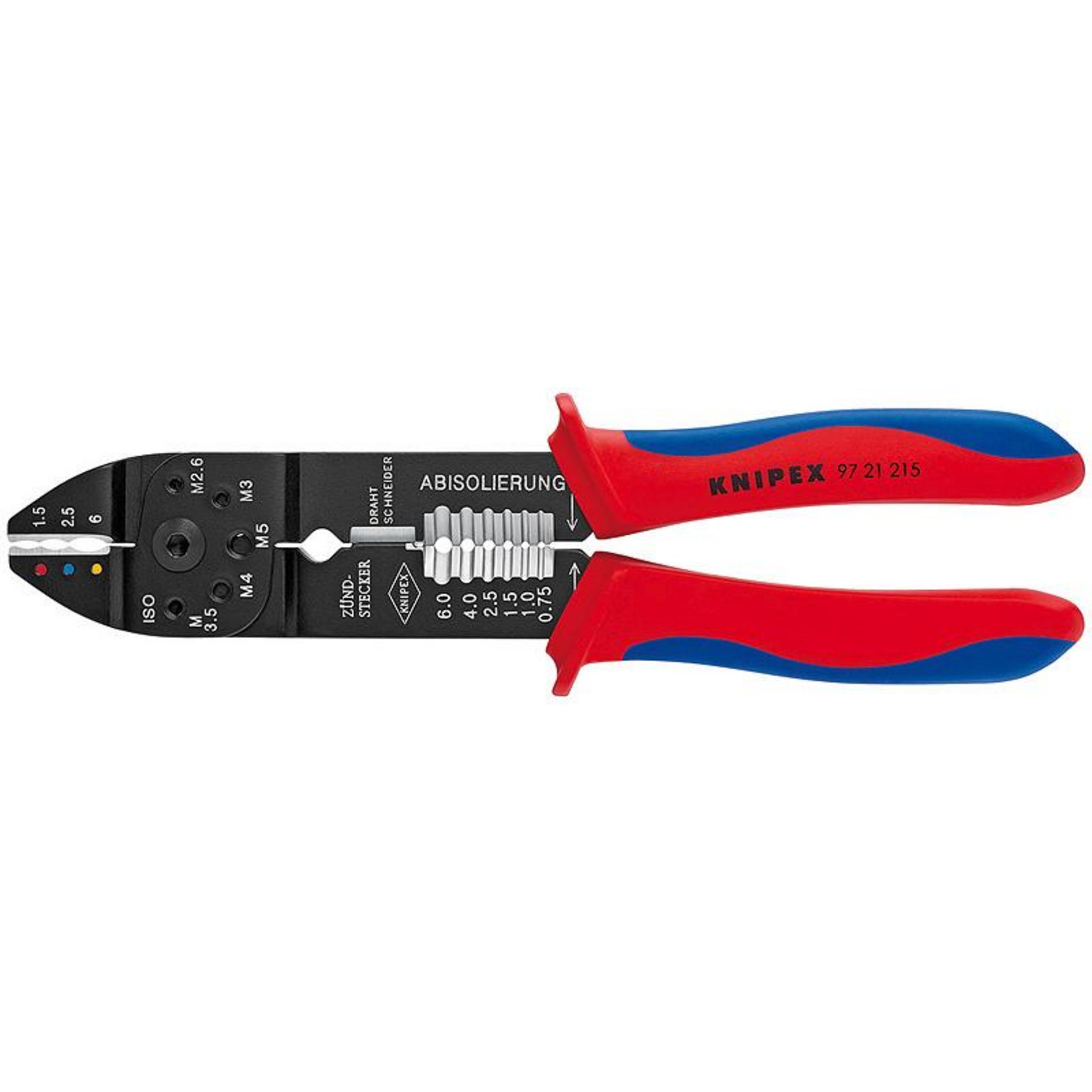 Pour couper, dénuder les câbles et pour sertir cosses, connecteurs isolés. Avec trous filetés pour la coupe de tiges filetées en cuivre ou en laiton M2,6 - M3 - M3,5 - M4 et M5.