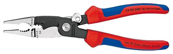 Pour saisir les formes plates et rondes, plier, ébavurer, couper les câbles, dénuder les conducteurs et sertir les cosses : 6 fonctions en une seule pince.Becs à bout lisse pour saisie sans endommagement de conducteurs individuels. Surfaces de préhension et zone serre-tube pour saisie de formes plat
