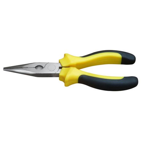 Pince téléphone coupanteMâchoires demi-rondes, longues et effilées avec pointes élastiques indéformables, même soumises à la torsion. Tranchants (dureté environ 61 HRC) pour fils doux, mi-durs et durs. Acier électrique au vanadium, forgé, trempé à l'huile en plusieurs passes.Coupe : 3,2 mm max | Lon
