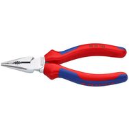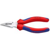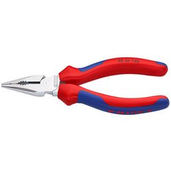 Pince universelle pour tous travaux usuels d'entretien avec tête étroite effilée permettant une utilisation dans des endroits difficiles d'accès. Mors à contour convexe d'un côté pour saisie en toute sécurité de pièces plates. Rainurage fraisé dans la zone de préhension permettant de bien maintenir et tirer de petites pièces telles que pointes, clous et boulons. Tranchants pour fil doux, mi-dur et dur assurant une coupe facile par son articulation à forte démultiplication. Grande longévité et bec solide forgé en acier à outil spécial de haute qualité, trempé à l'huile.