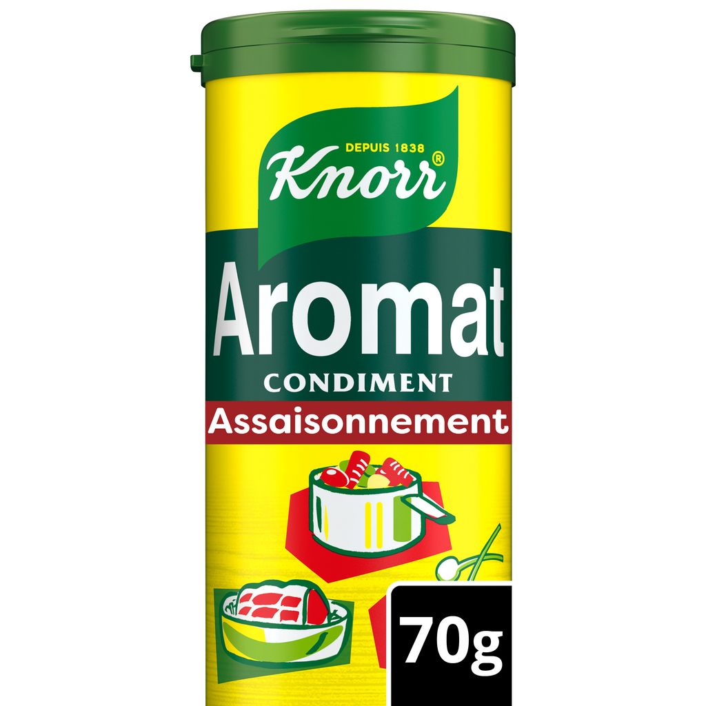 L'assaisonnement en poudre Aromat Knorr ® est un mariage subtil de sel, d'oignon, d'épice et aromate judicieusement sélectionné qui relève délicatement le goût de vos plats.