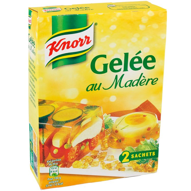 Découvrez la gelée KNORR® délicieusement parfumée d'une pointe de Madère. Elle est idéale pour transformer de simples préparations en plats de fêtes. L’HISTOIRE DE LA MARQUE La meilleure qualité, telle est notre philosophie en matière d’alimentation. Une philosophie appliquée depuis bien des décennies. Notre histoire débute en 1838, lorsque Carl Heinrich Knorr ouvre une usine à Heilbronn, en Allemagne, dont l’activité consiste à fournir de la chicorée aux fabricants de café. Il commence alors à faire des expériences sur la déshydratation des légumes et des assaisonnements afin de préserver leur saveur. C’est ainsi que furent lancées les premières soupes déshydratées Knorr dans toute l’Europe continentale, en 1873. Une découverte qui a ouvert la voie du progrès. En 1889 a été lancée une soupe aux pois, et en 1908 notre mélange pour sauces, une véritable prouesse à l’époque, sur le marché européen. La créativité et l’esprit d’innovation ont toujours animé nos chefs. SAVEURS DU MONDE Les produits Knorr sont présents dans de nombreux pays, aux quatre coins de la planète. Nous sommes très fiers de la perception authentique des saveurs locales que nous avons acquise, pour vous offrir des produits au goût remarquable et vous aider à goûter les saveurs authentiques d’autres cultures. En 1957, les produits vedettes de la marque Knorr, comme le bouillon en cube et les soupes, étaient vendus dans huit pays et en 2000, les produits Knorr se vendaient dans près de 90 pays partout dans le monde. Cette même année a marqué un tournant dans l’histoire de la marque, lorsque Knorr a rejoint la famille Unilever. Gelée déshydratée.