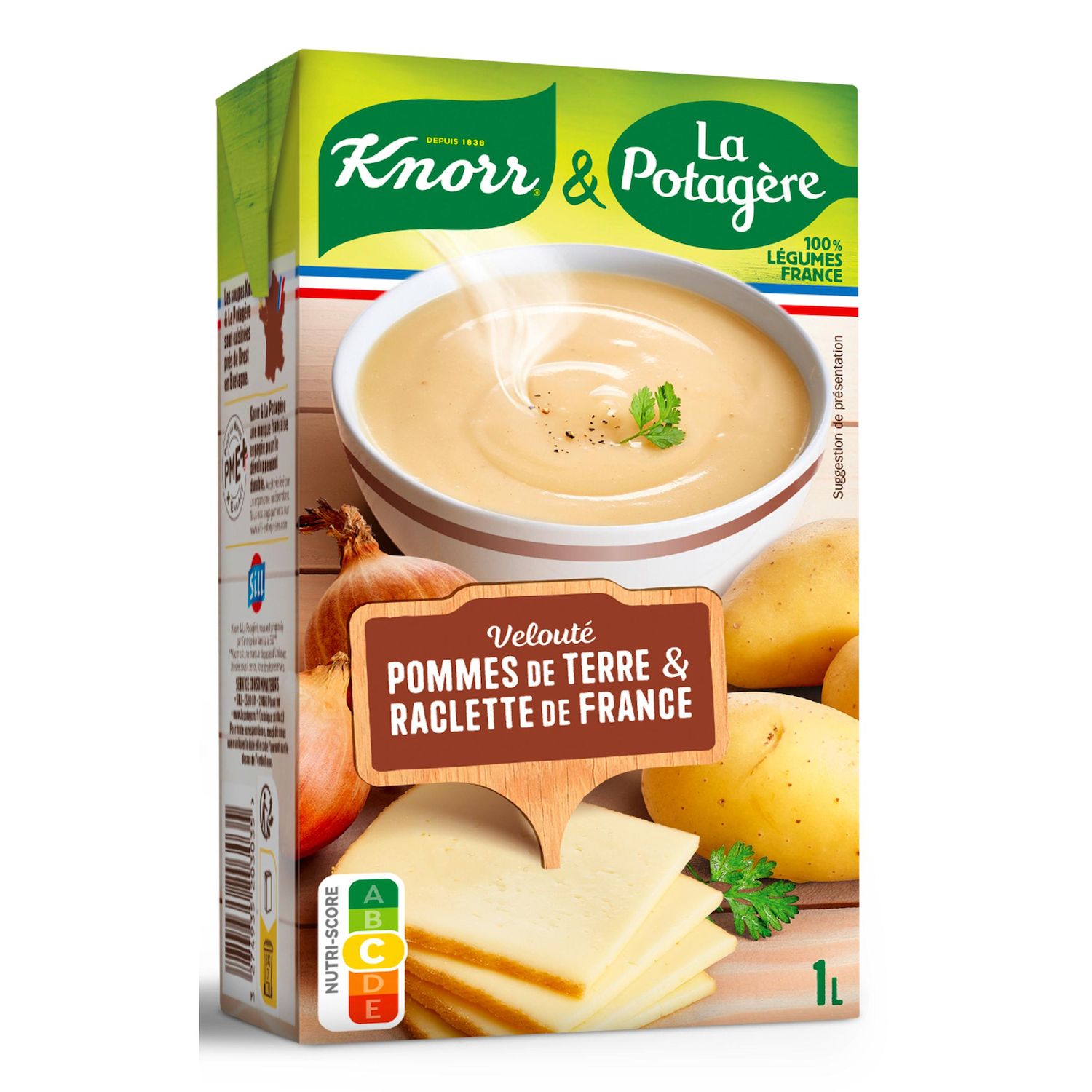 Ce velouté de pommes de terre et fromage à raclette est cuisiné avec de bons légumes français et du fromage à raclette au lait de vache français. Notre soupe est cuisinée près de Brest en Bretagne avec des ingrédients 100% d'origine naturelle.