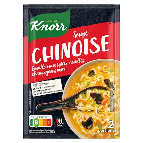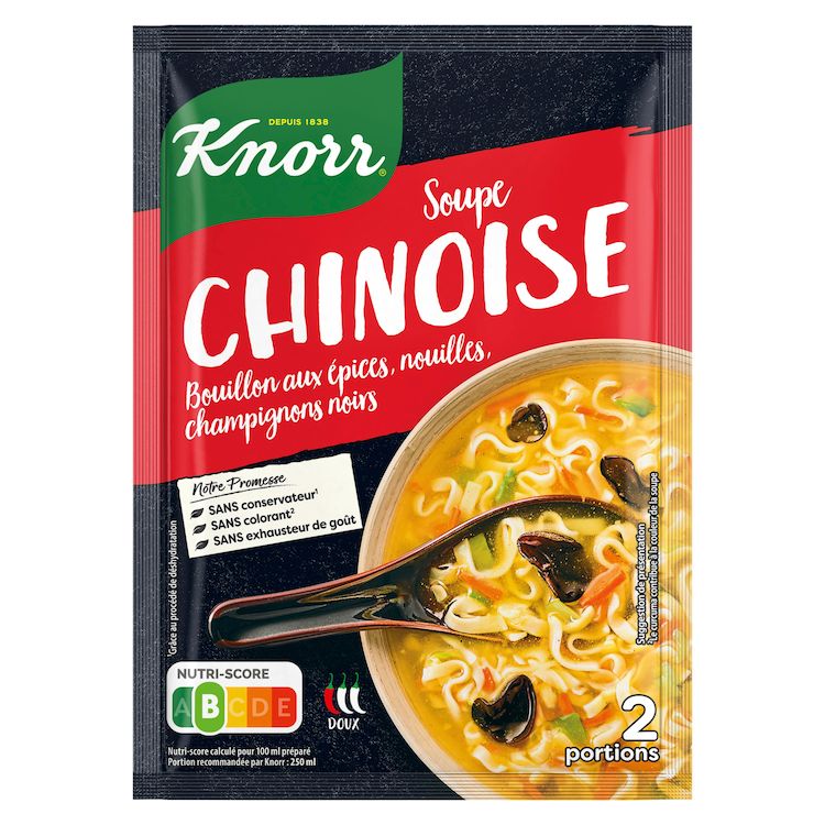 Découvrez la délicieuse Soupe Déshydratée Chinoise Knorr®, généreusement préparée avec des nouilles chinoises et des champignons noirs.