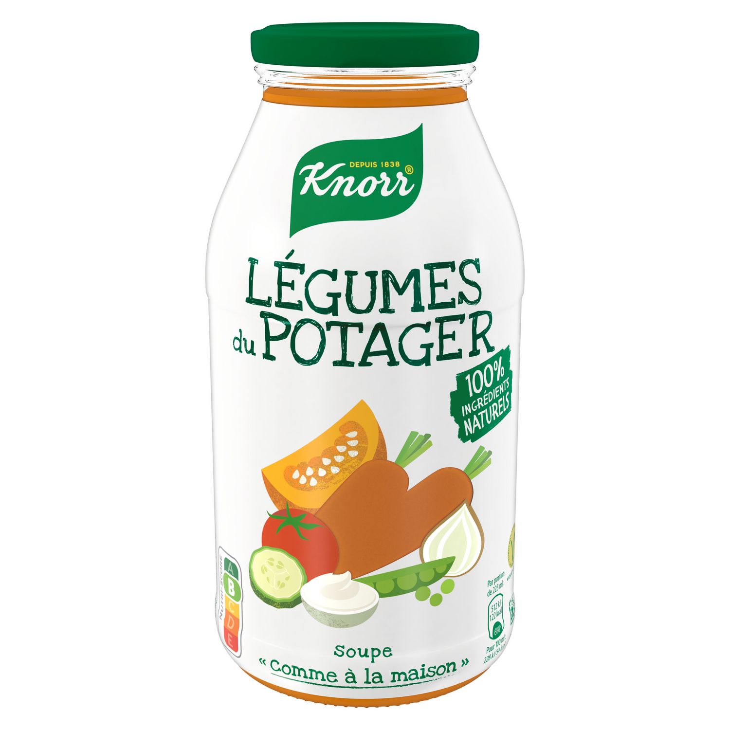 Notre soupe Knorr & La Potagère est cuisinée avec des légumes et une pointe de crème fraîche. Elle est conservée dans une bouteille en verre, préservant ainsi toute la fraîcheur et la qualité de ses ingrédients.