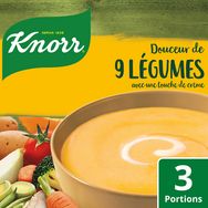 Découvrez la délicieuse soupe déshydratée douceur de 9 légumes touche de crème de Knorr ®, une soupe qui marie les légumes à une crème finement onctueuse.