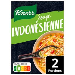 Découvrez la délicieuse Soupe Déshydratée Indonésienne Nouilles, Petits Légumes et 5 Épices Knorr ®. Inspiré des saveurs de Bali, Knorr® vous propose une soupe généreuse en nouilles aux œufs, légèrement assaisonnée aux 5 épices ainsi qu'à la citronnelle et à la feuille de combava pour vous faire goûter à l'Indonésie. Nutri-score B, ce potage déshydraté est préparé sans colorant, sans conservateur et sans exhausteur de goût. La déshydratation est un processus qui consiste à retirer l'eau des ingrédients de nos soupes afin de conserver leur qualité et leur saveur sans ajout de conservateur. Une recette de Soupe Indonésienne réconfortante prête en 5 minutes : versez le contenu du sachet dans 500 ml d'eau froide, puis portez à ébullition. Laissez mijoter 5 min. C'est prêt, vous n'avez plus qu'à vous régaler ! Voyagez avec les autres recettes de soupes exotiques déshydratées Knorr® : la soupe déshydratée Thaï, champignons et pousses de soja, et la soupe Chinoise Bouillons aux Épices, Nouilles et Champignons Noirs. Knorr® œuvre pour un futur alimentaire durable avec ses agriculteurs partenaires. Knorr est née en 1838 d'une seule passion, celle du goût. Tout commence par des ingrédients soigneusement sélectionnés et des légumes remplis de saveurs. Ces ingrédients sont ensuite cuisinés par des chefs passionnés. L'inspiration, ils la puisent dans leurs expériences, issues de leur vécu ou du temps présent, mais également dans l'interaction avec d'autres cultures.