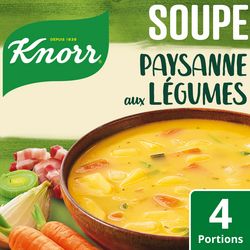 La soupe déshydratée Paysanne aux légumes cuisinés au lard de Knorr ® marie une sélection de bons légumes du potager avec des lardons fumés cuisinés dans un délicieux bouillon aux herbes et au lard.