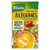Dégustez la soupe liquide Knorr® Douceur de 8 légumes à la crème fraîche, réalisée par nos chefs pour les gourmands. Une délicieuse recette élaborée avec des légumes issus de l'agriculture durable.