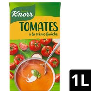 NOTRE RECETTE Ingrédients : tomate¹ : 60%, eau, CRÈME fraîche : 3%, lactosérum (LAIT), amidon modifié de maïs, sucre, oignon¹ : 1,2%, pâte de tomate séchée : 0,9% (huile de tournesol, eau, tomate séchée¹ : 0,2%, sel, basilic : 0,01%), mascarpone (FROMAGE), farine de BLÉ, sel, arômes naturels, épice et aromates (poivre, ail, feuilles de laurier). Peut contenir : autres céréales contenant du gluten, céleri, moutarde, œuf, soja. ¹Légumes issus de l'agriculture durable. 61,4% de légumes¹