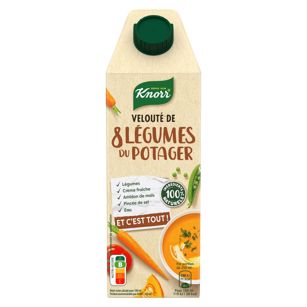 Découvrez le velouté de 8 légumes du potager Knorr ® : des légumes, de la crème fraîche, de l'amidon de maïs, une pincée de sel, de l'eau ET C'EST TOUT ! Cuisinée avec 100% d'ingrédients naturels et des légumes issus de l'agriculture durable, c'est la soupe liquide idéale pour des repas riches en saveurs. Un véritable régal pour toute la famille !