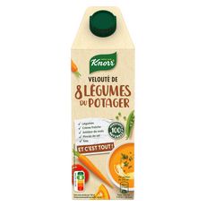 Soupe. Des ingrédients simples que vous pouvez retrouver chez vous. ET C'EST TOUT ! Ce velouté Knorr c'est toute la saveur de 8 légumes dans un plat savoureux, prêt en seulement quelques minutes. Il suffit juste de le réchauffer pour pouvoir ensuite se régaler d'un velouté au goût incomparable. Les recettes Knorr® c’est toute la saveur du potager dans des soupes préparées à base d'ingrédients naturels. Tous les ingrédients sont soigneusement sélectionnés pour vous offrir des plats comportant des légumes toujours pleins de saveur. 100 % transparent, ce velouté est fait avec des produits d'origine naturelle : légumes, eau, crème fraîche, amidon de maïs, pincée de sel, noisette de beurre. Cette soupe est préparée avec amour, sans colorant, sans conservateur¹, sans exhausteur de goût et sans sucres ajoutés². Chez Knorr®, une utilisation responsable des ressources agricoles est la clé pour vous offrir des soupes liquides de qualité. C’est pourquoi tous nos légumes utilisés sont issus de l’agriculture durable et cultivés en plein champs pour vous préparer des soupes plus délicieuses. Pour faire de bons plats, il faut des cultures saines, plantées dans un sol riche et fertile, où un fermier respectueux de la nature s'engage à s'en occuper jusqu'à ce qu’elles arrivent à maturité. C'est comme ça que tous les produits, faits à base de ces légumes, ont un goût naturel et sont pleins de saveurs. Quelles que soient vos envies, Knorr® vous accompagne au quotidien. Knorr® s'engage également pour la planète, en offrant des briques et des bouchons recyclables. ¹Comme la réglementation l'exige ²Contient des sucres naturels