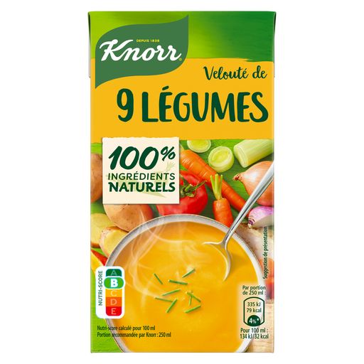 Les chefs Knorr® vous offrent toute la saveur du potager dans ce velouté végétarien et onctueux issu du mariage de 9 délicieux légumes.