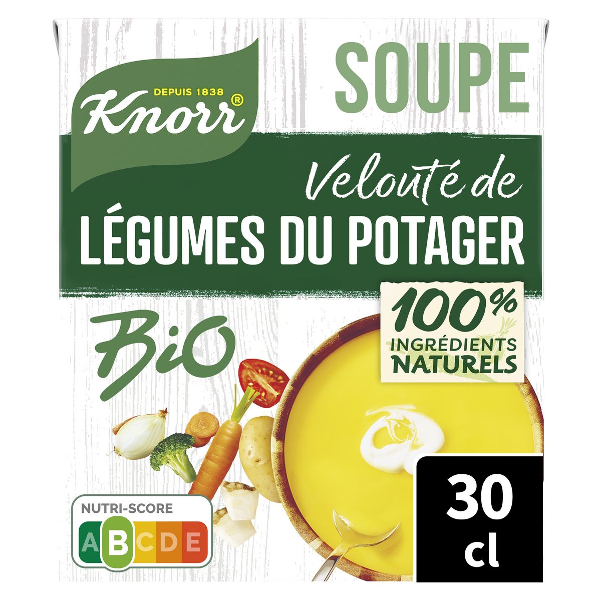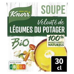 Découvrez la douceur de notre soupe velouté de légumes du potager à la crème fraîche Bio Knorr® qui associe tout le bon goût des légumes issus de l'agriculture biologique à la douceur de la crème fraiche pour vous offrir un moment délicieusement gourmand. Une soupe nutri-score B avec des légumes issus de l'agriculture durable pour un repas rapide et riche en goût. Cette soupe riche en légumes et végétarienne est préparée sans exhausteur de goût et sans conservateur (comme toutes les soupes liquides au rayon ambiant). Nos briques, majoritairement recyclables et certifiées par les labels FSC® et ASI®, soutiennent l'approvisionnement durable en carton et en aluminium. Ce format 30 cl vous permet de réaliser 1 généreux bol de soupe. Une recette de soupe réconfortante facile et rapide à préparer : secouez, versez, réchauffez sans porter à ébullition… et dégustez ! Knorr® œuvre pour un futur alimentaire durable avec ses agriculteurs partenaires. Chez Knorr ®, nous sommes convaincus qu'une utilisation responsable des ressources agricoles contribue à vous offrir des soupes de qualité. C'est pourquoi nous faisons le choix de légumes issus de l'agriculture durable et cultivés en plein champ pour vous préparer nos délicieuses soupes. Grâce à nos produits, recettes et conseils, nous souhaitons vous aider à faire des petits changements quotidiens qui font toute la différence.