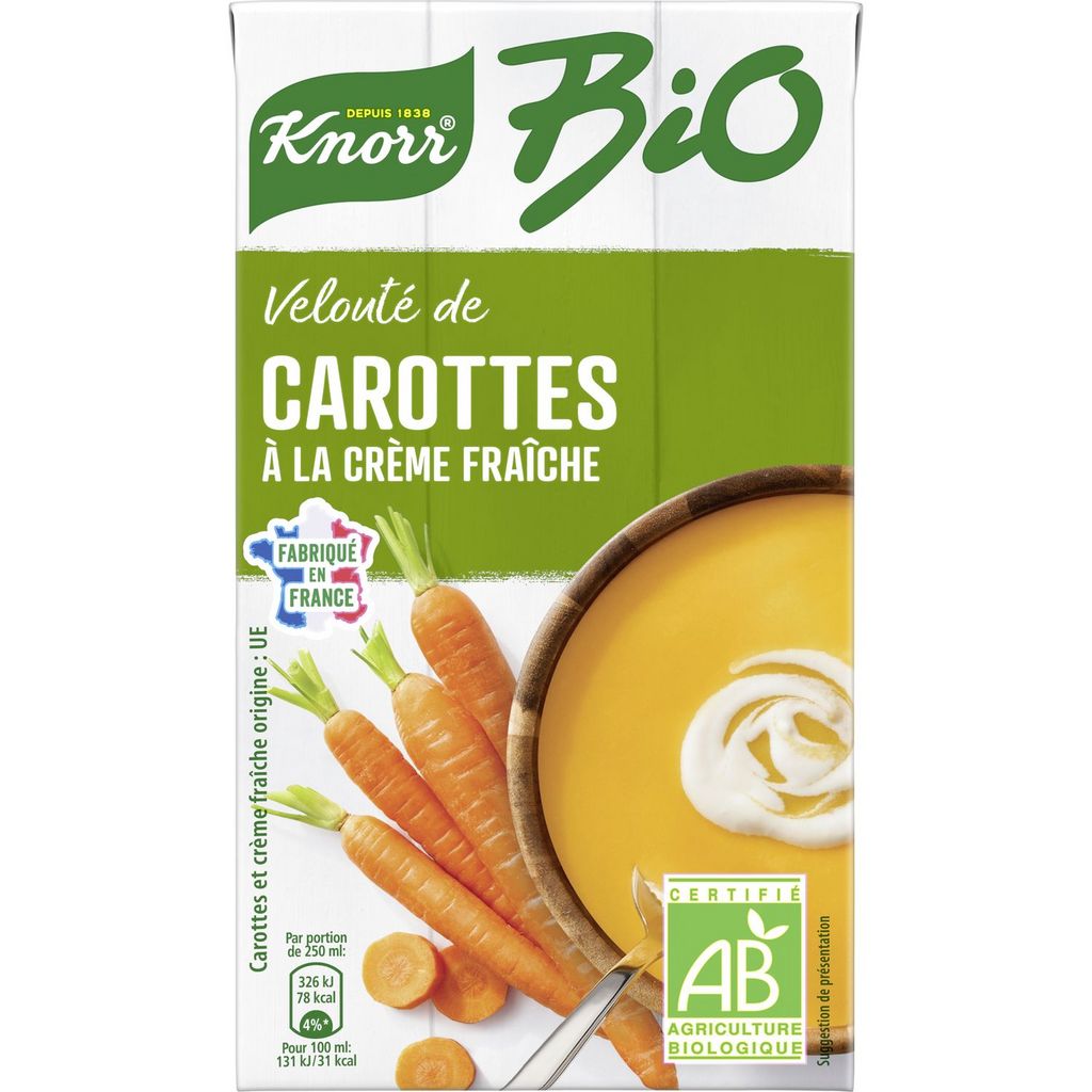 Retrouvez tout le savoir-faire des chefs Knorr® et le bon goût de légumes issus de l'agriculture biologique dans ce délicieux Velouté de Carottes cuisiné par les chefs Knorr® et fabriqué en Alsace. Toujours naturel, bio et qui convient aux végétariens. La meilleure qualité possible, telle est notre philosophie en matière d’alimentation. Depuis la création de Knorr® par Carl Heinrich Knorr en Allemagne en 1838, tous nos efforts visent à créer des recettes originales et des plats savoureux. Notre histoire est faite de milliers de petites anecdotes d’agriculteurs, de fournisseurs et de chefs passionnés qui tentent de rendre le monde meilleur et plus savoureux. Tous s’impliquent pour que l’ensemble de nos légumes soit cultivé selon les principes de l’agriculture durable. Il s’agit là d’une approche favorable pour la planète et qui, nous en sommes certains, influence le goût et les saveurs de chaque plat que vous mijotez. Quelles que soient vos envies, Knorr® vous accompagne au quotidien. Soupe.