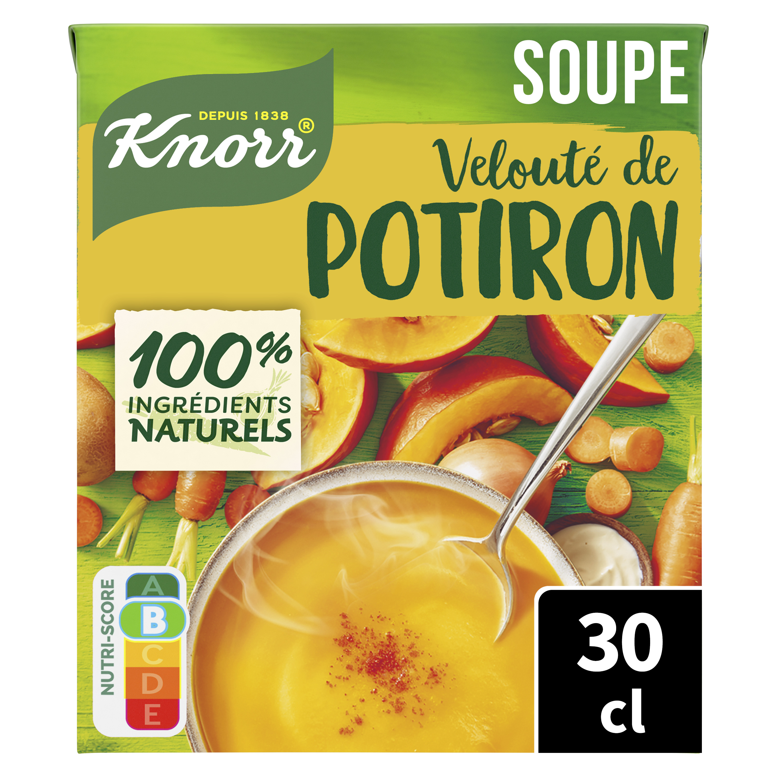 Retrouvez le bon goût du potiron et la douceur de la crème fraiche française de la soupe Velouté de Potiron de Knorr®, pour un moment délicieusement gourmand. Une soupe nutri-score B cuisinée avec 100% d'ingrédients naturels et des légumes issus de l'agriculture durable, pour un repas simple et riche en goût. Cette soupe végétarienne et riche en légumes est préparée sans exhausteur de goût, sans colorant et sans conservateur (comme toutes les soupes liquides au rayon ambiant). Nos briques, majoritairement recyclables et certifiées par les labels FSC® et ASI®, soutiennent l'approvisionnement durable en carton et en aluminium. Ce format 30 cl vous permet de servir un généreux bol de soupe. Une recette réconfortante, facile et rapide à préparer : secouez, versez, réchauffez sans porter à ébullition… et dégustez ! Knorr® œuvre pour un futur alimentaire durable avec ses agriculteurs partenaires. Chez Knorr ®, nous sommes convaincus qu'une utilisation responsable des ressources agricoles contribue à vous offrir des soupes de qualité. C'est pourquoi nous faisons le choix de légumes issus de l'agriculture durable et cultivés en plein champ pour vous préparer nos délicieuses soupes. Grâce à nos produits, recettes et conseils, nous souhaitons vous aider à faire des petits changements quotidiens qui font toute la différence.