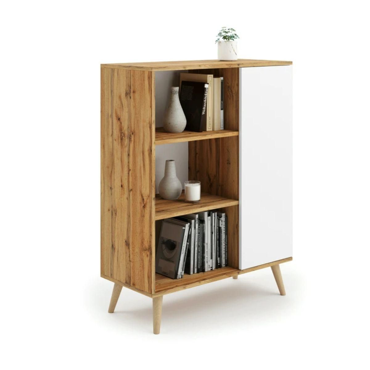 Bibliothèque Fondi en Bois Blanc avec Pieds Élevés pour un Style Scandinave Épuré
