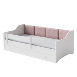 Découvrez le lit enfant Eryk 160x80 cm en velours rose, parfait pour la chambre de votre petit. Ce lit allie élégance et sécurité, avec des bords arrondis pour prévenir les accidents. Les panneaux en velours doux offrent un confort optimal, et le tiroir à roulettes facilite le rangement des jouets.