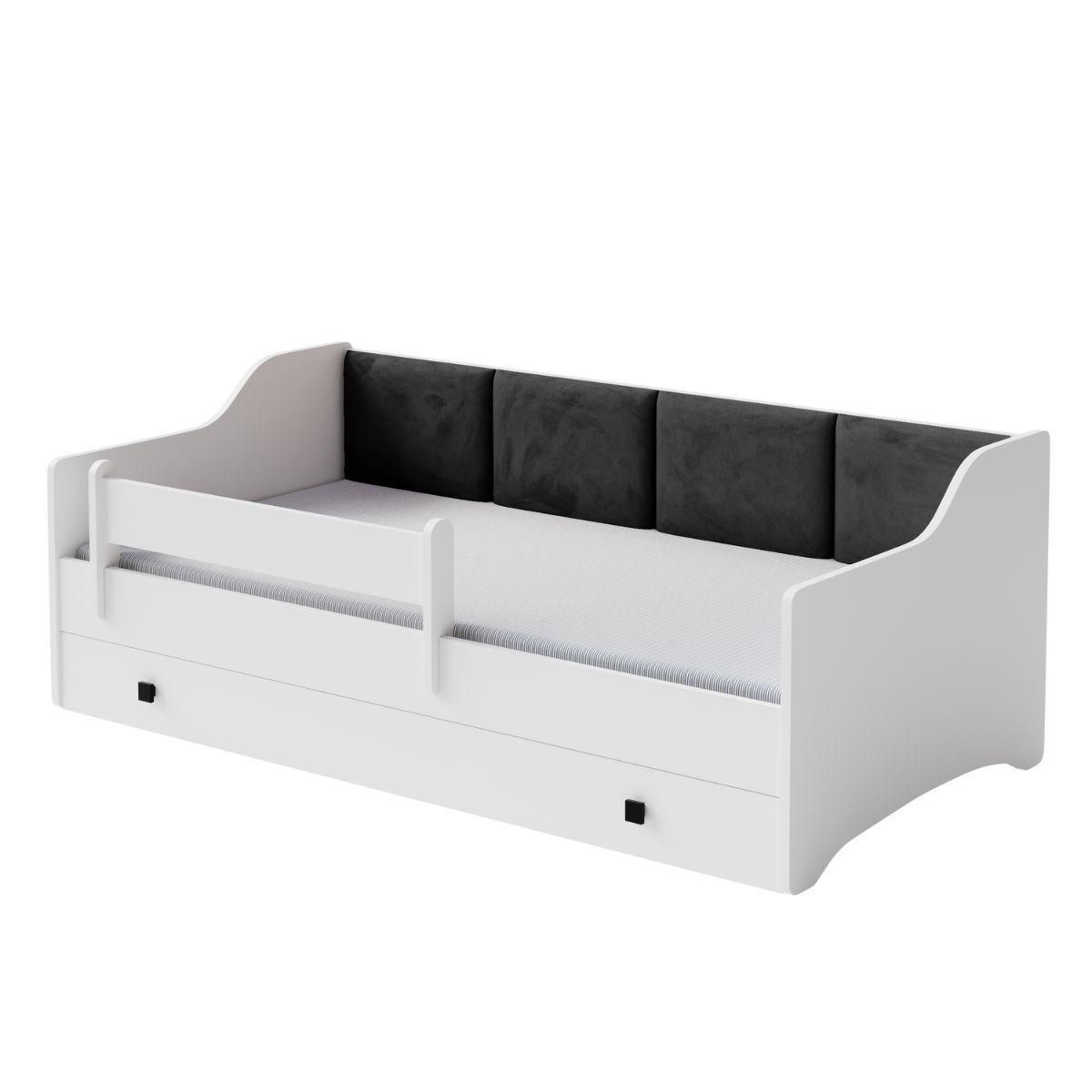 Découvrez le lit enfant ERYK 160x80 cm en graphite, une pièce maîtresse pour la chambre de votre petit. Conçu avec des matériaux de haute qualité, ce lit allie élégance et fonctionnalité. Ses bords arrondis garantissent la sécurité, tandis que les panneaux rembourrés en velours doux offrent un confort optimal. Il est doté d'un tiroir sur roulettes pour ranger la literie ou les jouets. Dimensions : 164 cm x 85 cm x 60 cm, supporte jusqu'à 110 kg, idéal pour les enfants jusqu'à 80 cm de large.