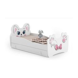 Lit simple enfant PINK CAT 160 + tiroir de rangement avec matelas