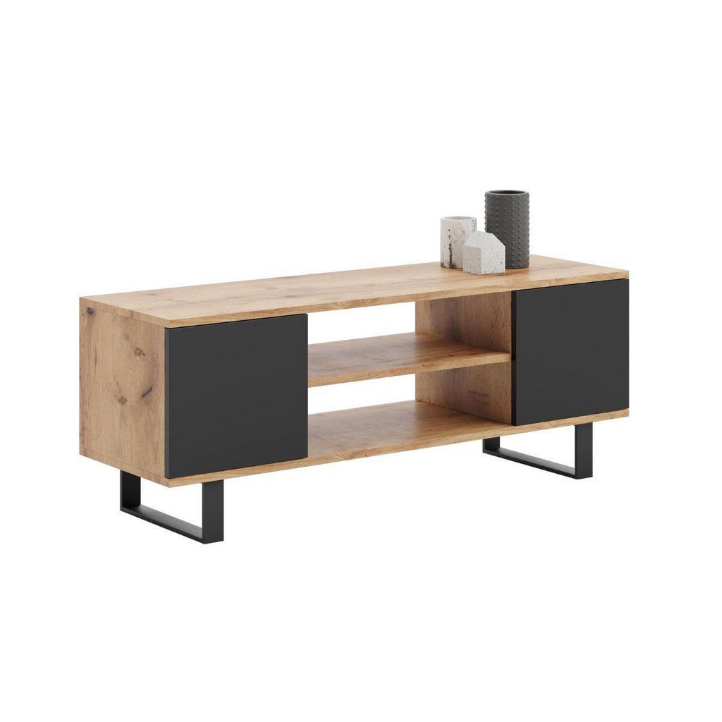 Transformez votre salon avec le meuble TV FOCUS 155, alliant fonctionnalité et style. Ce meuble pratique comprend une étagère et des armoires verrouillables pour ranger livres et télécommandes. Fabriqué avec des matériaux de haute qualité, il présente des panneaux laminés tendance et des bords protégés par une finition ABS pour plus de durabilité. Ses pieds en métal noir de 14 cm ajoutent une touche contemporaine. Le design léger permet de réaménager facilement votre espace. Dimensions : panneaux contrecollés de 18 mm d'épaisseur, dos en HDF.
