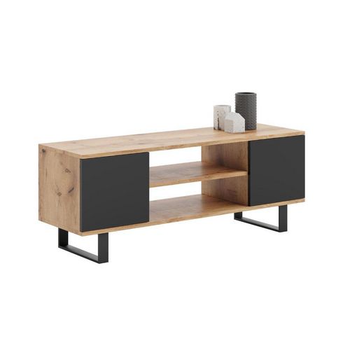 Transformez votre salon avec le meuble TV FOCUS 155, alliant fonctionnalité et style. Ce meuble pratique comprend une étagère et des armoires verrouillables pour ranger livres et télécommandes. Fabriqué avec des matériaux de haute qualité, il présente des panneaux laminés tendance et des bords proté