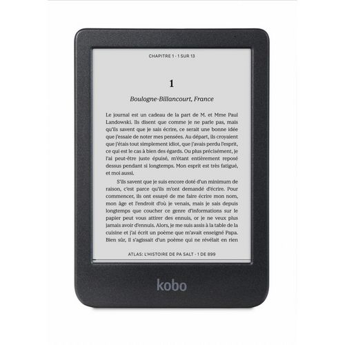 | Formats de fichiers | EPUB, EPUB3, FlePub, PDF, MOBI, JPEG, GIF, PNG, BMP, TIFF, TXT, HTML, RTF, CBZ, CBR et Audiobooks KOBO | |