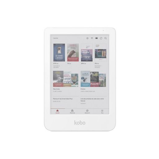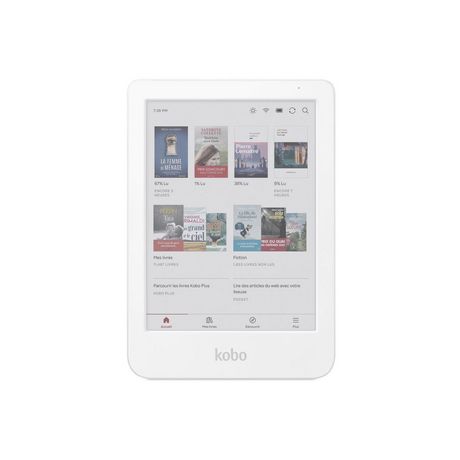 | Formats de fichiers | EPUB, EPUB3, FlePub, PDF, MOBI, JPEG, GIF, PNG, BMP, TIFF, TXT, HTML, RTF, CBZ, CBR et Audiobooks KOBO | |