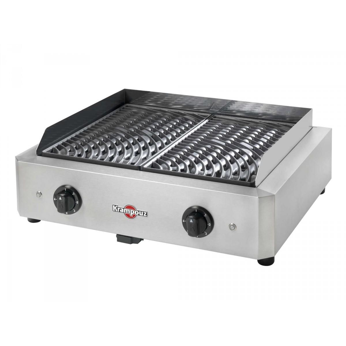 Krampouz GECIM2OA00 Avec ses deux zones de cuisson indépendantes, le barbecue électrique MYTHIC XL Krampouz GECIM2OA00 permet de maîtriser simultanément la ciusson de deux aliments à des températures différentes. Ce barbecue électrique XL Krampouz combine style et performance pour des cuissons réalisées à la perfection. La barbecue électrique GECIM2OA00 est idéale pour 8 à 10 convives. Elle est dotée de 2 thermostats réglables jusqu'à 300°C, 2 grilles amovibles en fonte émaillée compatible lave-vaisselle, Dosseret de protection contre les éclaboussures et 2 barquettes aluminium pour récupération des jus.