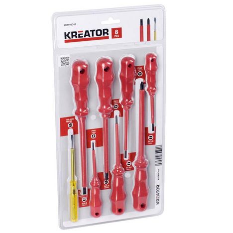 Assortiment de 7 tournevis isolés et 1 testeur Kreator