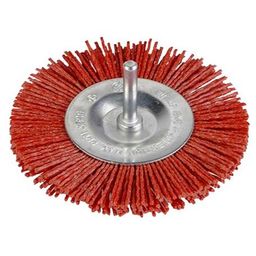 Brosse plate avec fils corindon pour un travail plus fin que les fils métalliques. Pour enlever la peinture et nettoyer le bois et le métal. Se monte sur une perceuse.