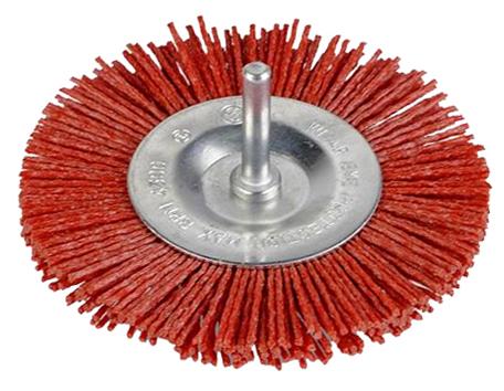 Brosse plate avec fils corindon pour un travail plus fin que les fils métalliques. Pour enlever la peinture et nettoyer le bois et le métal. Se monte sur une perceuse.