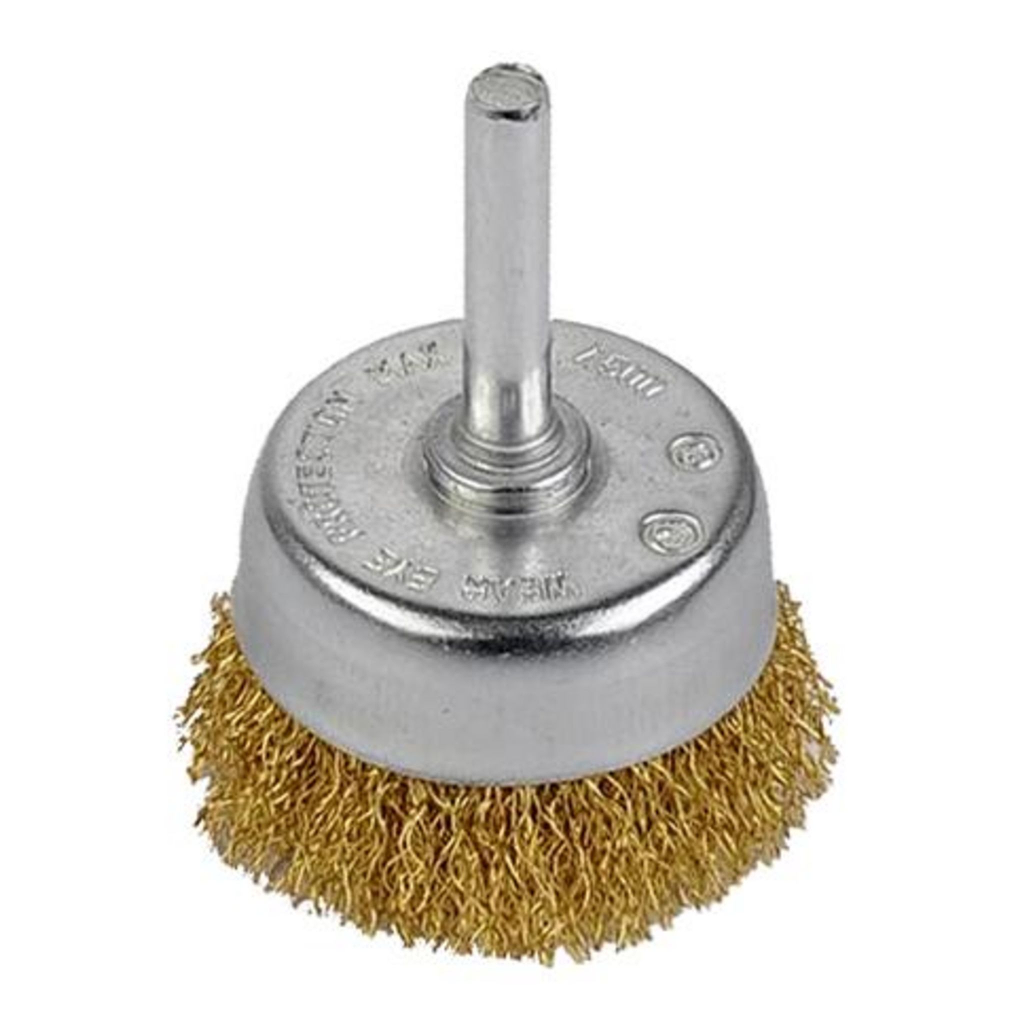 Brosse soucoupe avec fils ondulés en acier laitonné. Le revêtement en cuivre protège de l&rsquo,oxydation. Pour enlever la rouille, la peinture, le ciment sur le bois, le métal, la pierre. Se monte sur une perceuse.