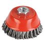 Brosse soucoupe avec fils torsadés très résistants et très abrasifs pour les travaux intensifs. Pour enlever la rouille, la peinture, le ciment sur le métal, la pierre. Se monte sur meuleuse.