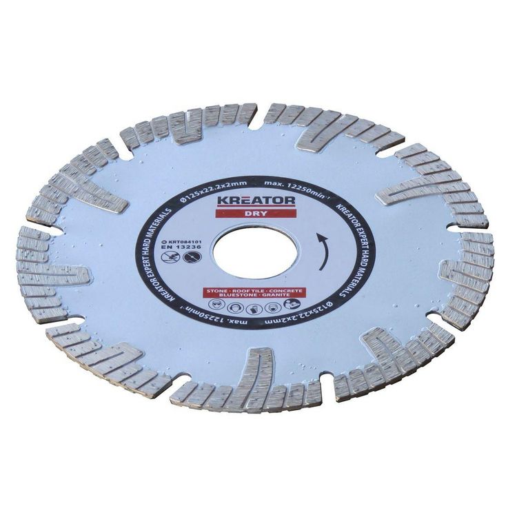 Disques à segments pour la coupe des matériaux les plus durs : béton armé, pierre de taille, granit, etc. Utilisation à sec. Hauteur des segments : 10 mm. Se montent sur les meuleuses.