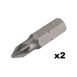 2 embouts de vissage en acier de qualité S2 pour usage intensif. Emmanchement 6 pans 1/4&rsquo,&rsquo, - 6,35 mm.Pozidriv 1 - 25 mm