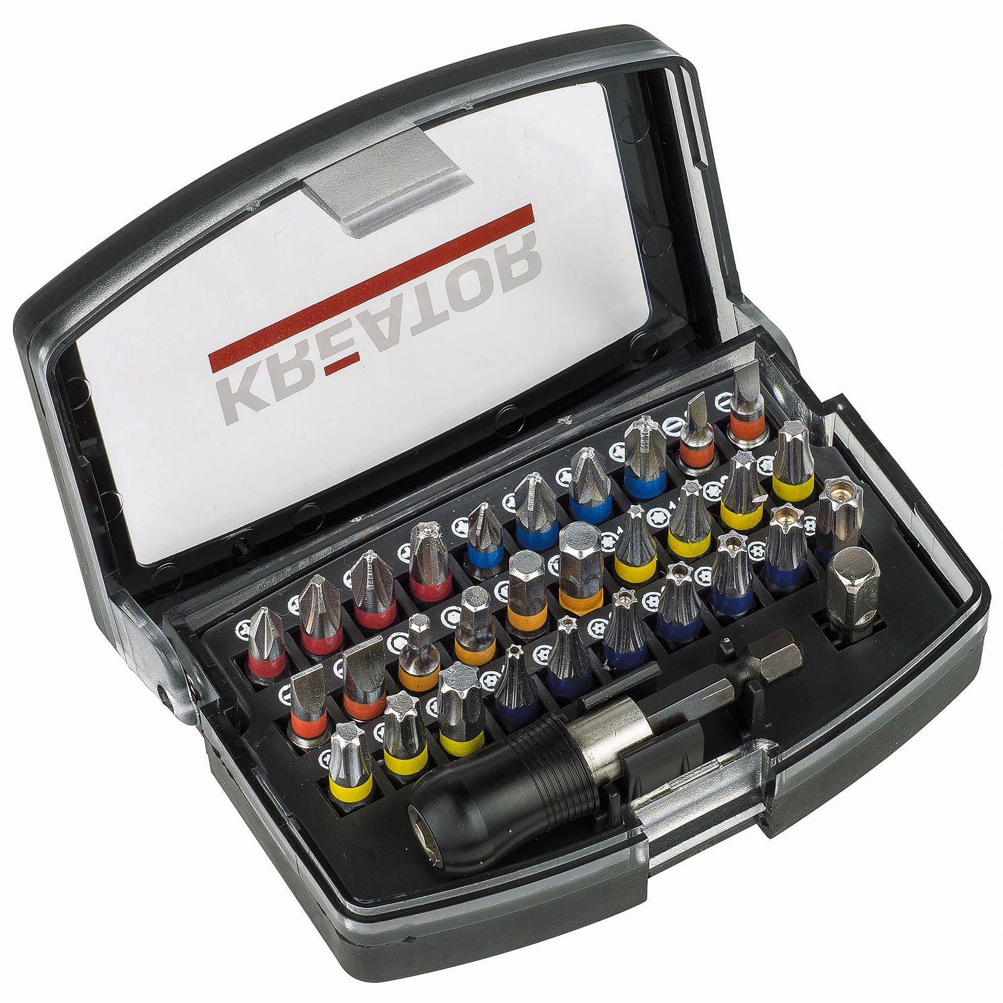 Description détaillée du produitProduit: Embouts de vissage en coffret Contenance: 32 pièces (30 embouts de vissage + carré + embout magnétique)Dimensions du coffret: 20 x 12 x 5 cmMarque: Kreator