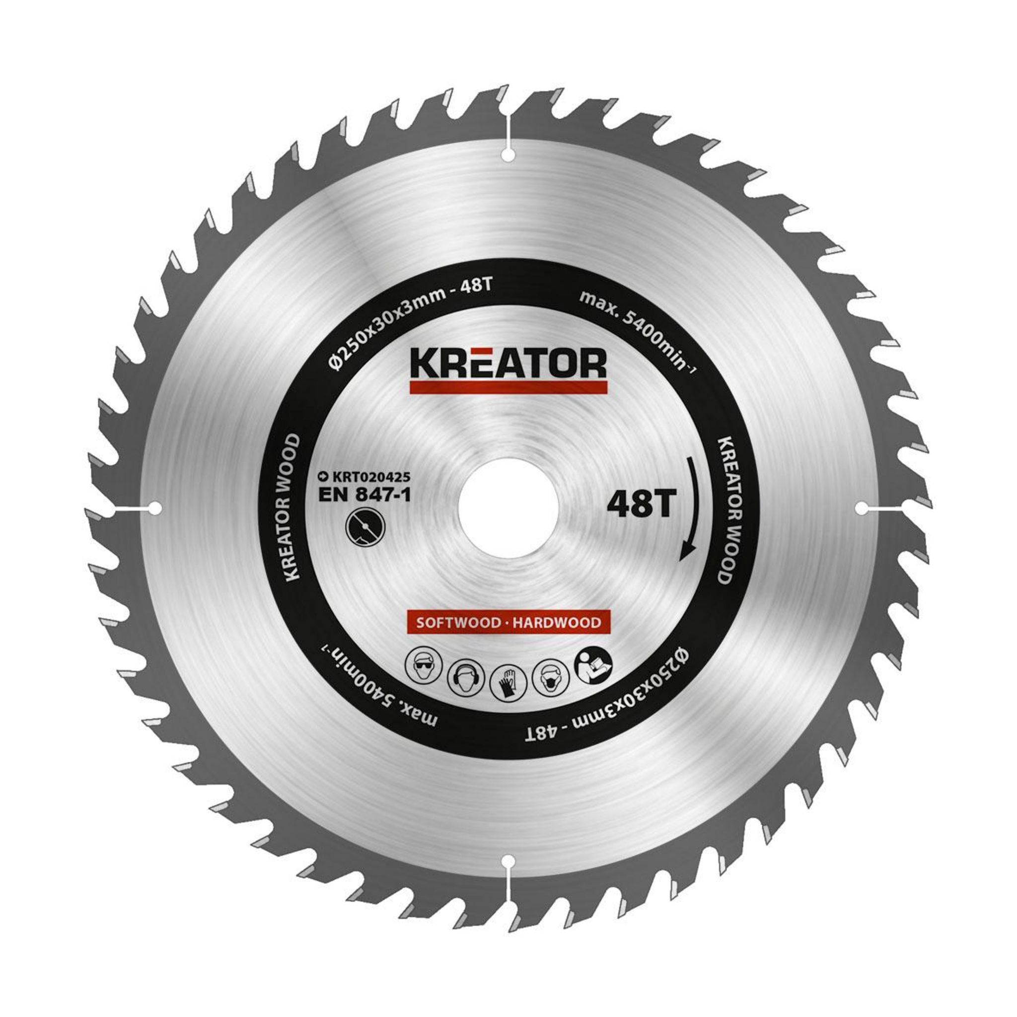 Informations Techniques:Produit: Lame de scie circulaireUnivers: QuincaillerieDiamètre de la lame: 250 mmÉpaisseur de la lame: 3 mmNombre de dents: 48 dentsVitesse de rotation max: 5400 trs/minMarque: Kréator