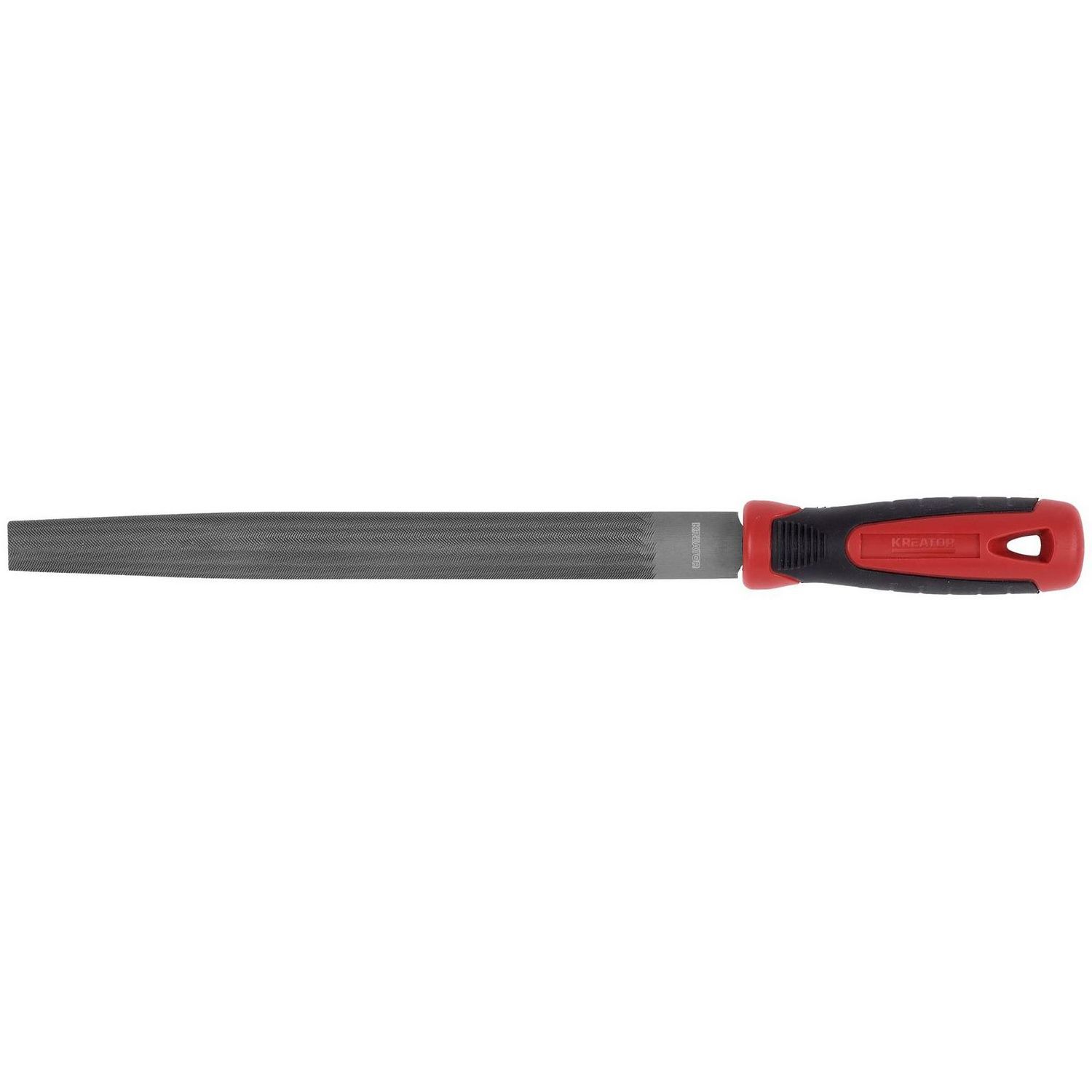 Caractéristiques techniques:Produit: lime à boisType: demi rondeMatière lame: acier A3 ultra-résistantLame dure affutée T12 solide et fiableLongueur lame: 200 mmPoignée ergonomique en caoutchouc TPRpermet de limer tout type de surfaces de boisColoris: rouge et noirMarque: Kreator