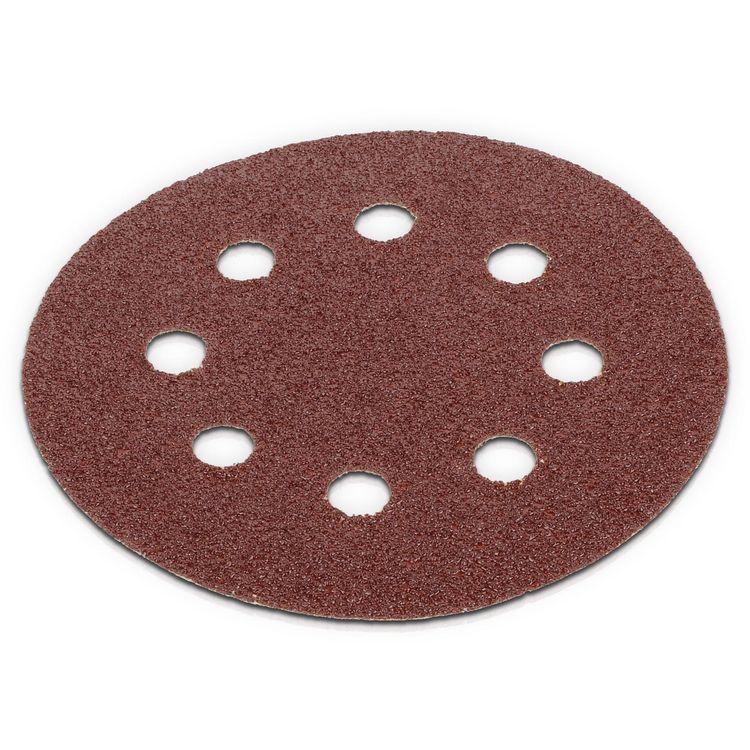 Disque de papier corindon perforé pour ponçage à sec sur la plupart des matériaux.Perforage 8 trous sur Ø, 65 mmFixation : auto-aggripanteDimensions : Ø, 115 mmGrain : 40