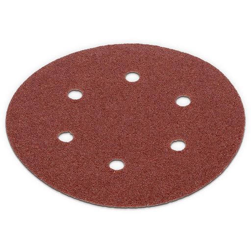 Disque de papier corindon perforé pour ponçage à sec sur la plupart des matériaux.Perforage 6 trous sur Ø, 80 mmFixation : auto-aggripanteDimensions : Ø, 150 mmGrain : 40