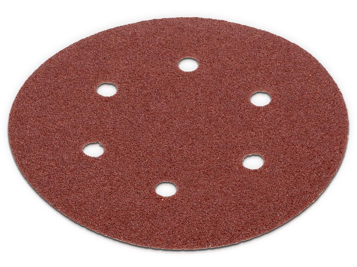 Disque de papier corindon perforé pour ponçage à sec sur la plupart des matériaux.Perforage 6 trous sur Ø, 80 mmFixation : auto-aggripanteDimensions : Ø, 150 mmGrain : 60