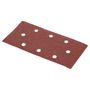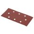 Papier corindon perforé pour ponçage à sec sur la plupart des matériaux.Perforage : 8 trous en oval Fixation : auto-aggripanteDimensions : 93 x 187 mmGrain : 40