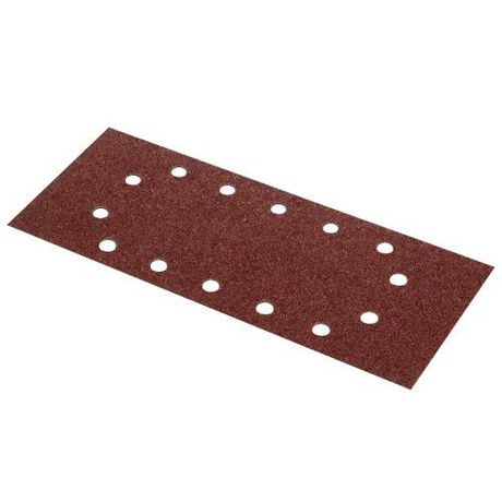 Papier corindon perforé pour ponçage à sec sur la plupart des matériaux.Perforage : 8 trous en oval Fixation : pincesDimensions : 115 x 280 mmGrain : 120