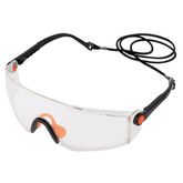 Lunettes de protection réglables avec cordon de sécurité. Verre en polycarbonate résistant avec protection latérale. Pont nasal confortable et antiglisse. Branches réglables en longueur.