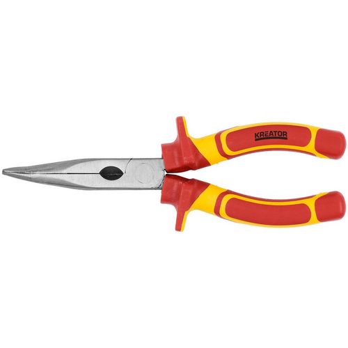 Description détaillée du produitProduit: Pince isolée à bec long coudéLongueur: 200mmType de pince à bec: long coudéType de cisaille à tôle: Coupe devantProtection électrique: isoléColoris: rouge et jauneMarque: Kreator